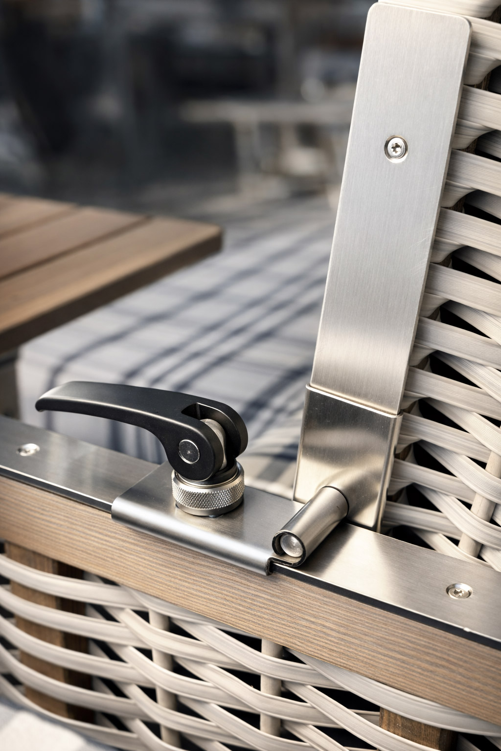 Das Modell Düne hat ein gebogenes Seitenteil und eine strahlenförmige Flechtung.